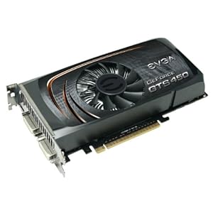 The EVGA GeForce GTS 450 dominates the competition with more than 2x the DirectX 11 geometry processing power for unparalleled game realism in the hottest titles. GeForce your rig and gear up with the latest industry leading technologies like high performance NVIDIA GeForce drivers and incredibly realistic NVIDIA PhysX in-game effects. The EVGA GeForce GTS 450 features 192 CUDA Cores, a high speed GDDR5 memory interface with 1024MB onboard and full DirectX 11 support providing for unrivalled performance and breathtaking image quality. And with NVIDIA 3D Vision, PhysX and CUDA technologies, the EVGA GeForce GTS 450 powers all the incredibly realistic effects your games can throw its way. Specifications include the GTS 450 (783 MHz core clock) chipset, 1024MB (1GB) of 0.5ns GDDR5 memory with a 3608 MHz Effective memory clock and 57.7 GB/second memory bandwidth, 128 bit memory bit width, 1566 MHz Shader Clock, 192 CUDA cores, 25.1 GT/s texture fill rate and PCI Express 2.0 compatibility. Additional features include Microsoft DirectX 11 Support, NVIDIA PhysX and NVIDIA PureVideo HD Technologies, NVIDIA 2-way SLI readiness, NVIDIA 3D Vision readiness, NVIDIA CUDA technology with CUDA C/C++, DirectCompute 5.0, and OpenCL support, PCI-Express 2.0 support and OpenGL 4.0 support. Connections are 1 Mini-HDMI 1.4a connector and 2 Dual-Link DVI HDCP capable connectors. Package includes the EVGA Driver/software disc with EVGA Precision Tuning utility, 1 DVI to VGA adapter, 1 6-pin PCI-E power adapter, and a 3 year limited warranty if registered within 30 days at evga.com.
